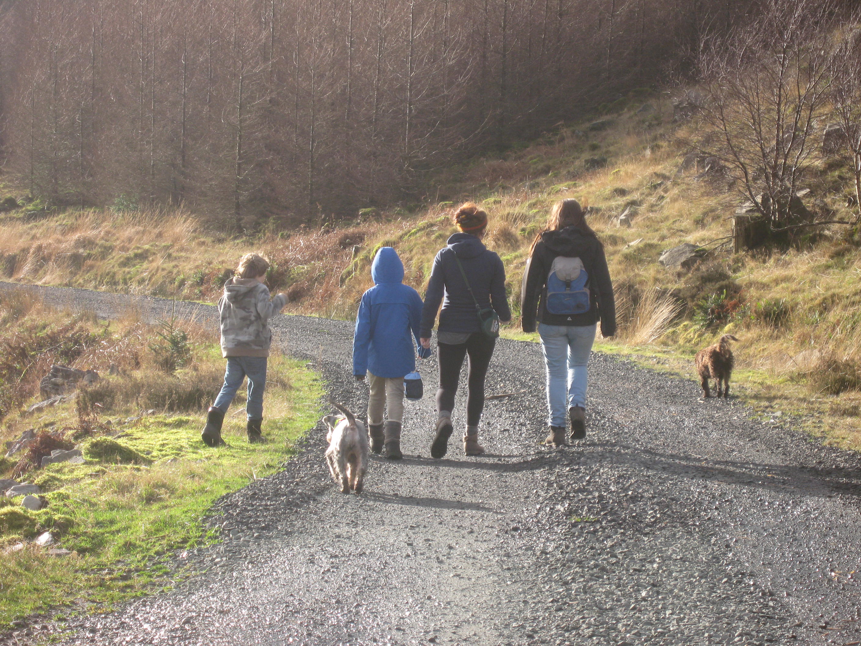 We used the level forestry roads rather than the narrower public footpaths as they are lovely for chatting whilst walking.  IMG_8561Good progress was made across the forest to Grassguards Farm with its little concreted ford.  Here we picked up the Grassguards Gill bridleway down into the beautiful gnarled trees and river walks around Wallowbarrow.   Here, we took the opportunity to lob some rather large stones in the river before retiring to the Newfield for half pints of CatNap and something-and-chips. WallowBarrow